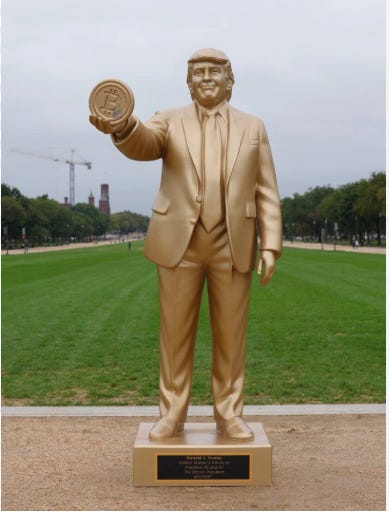 Memecoiners erect a 12-foot golden Trump Bitcoin statue near US Capitol
